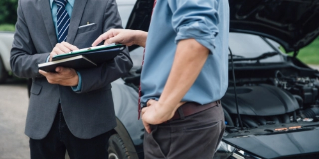 事故現場・損害物の確認や被害状況の写真撮影後、相手方立会いの上被害範囲の確認を行います。